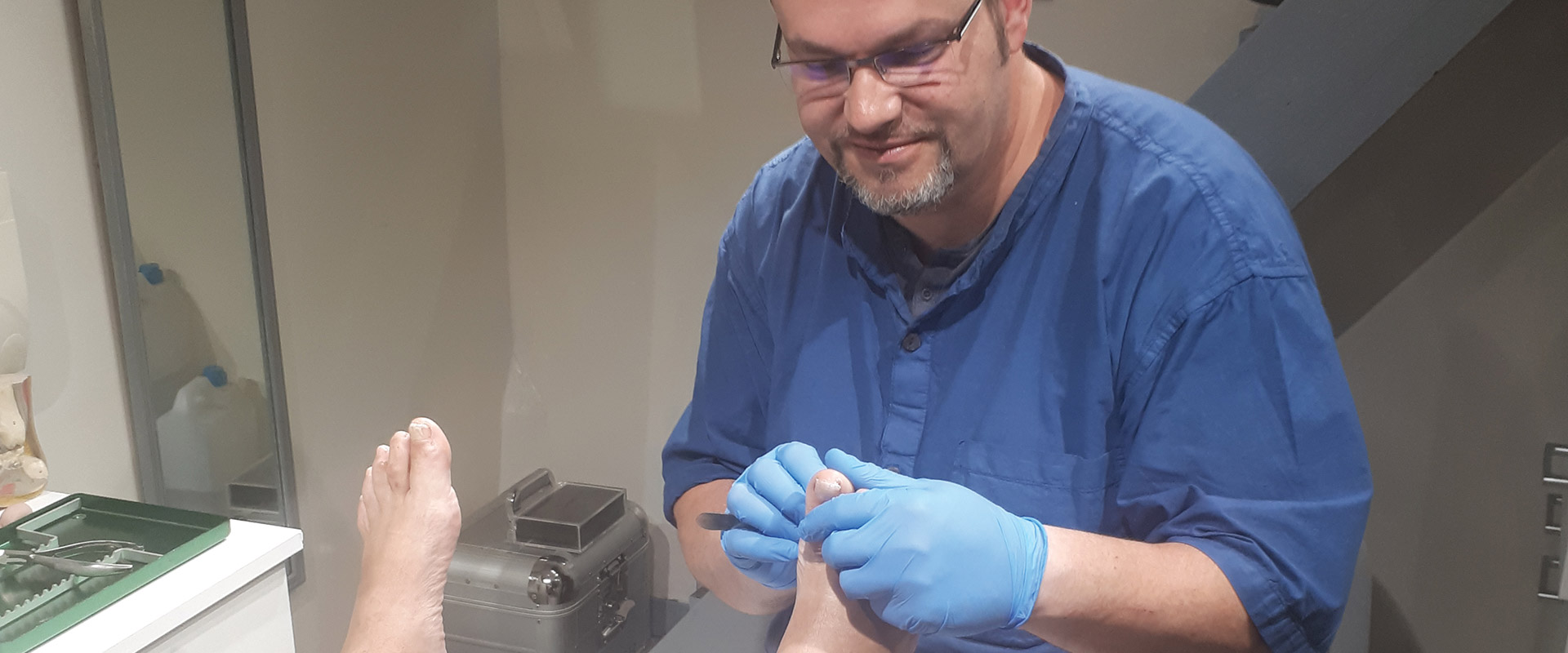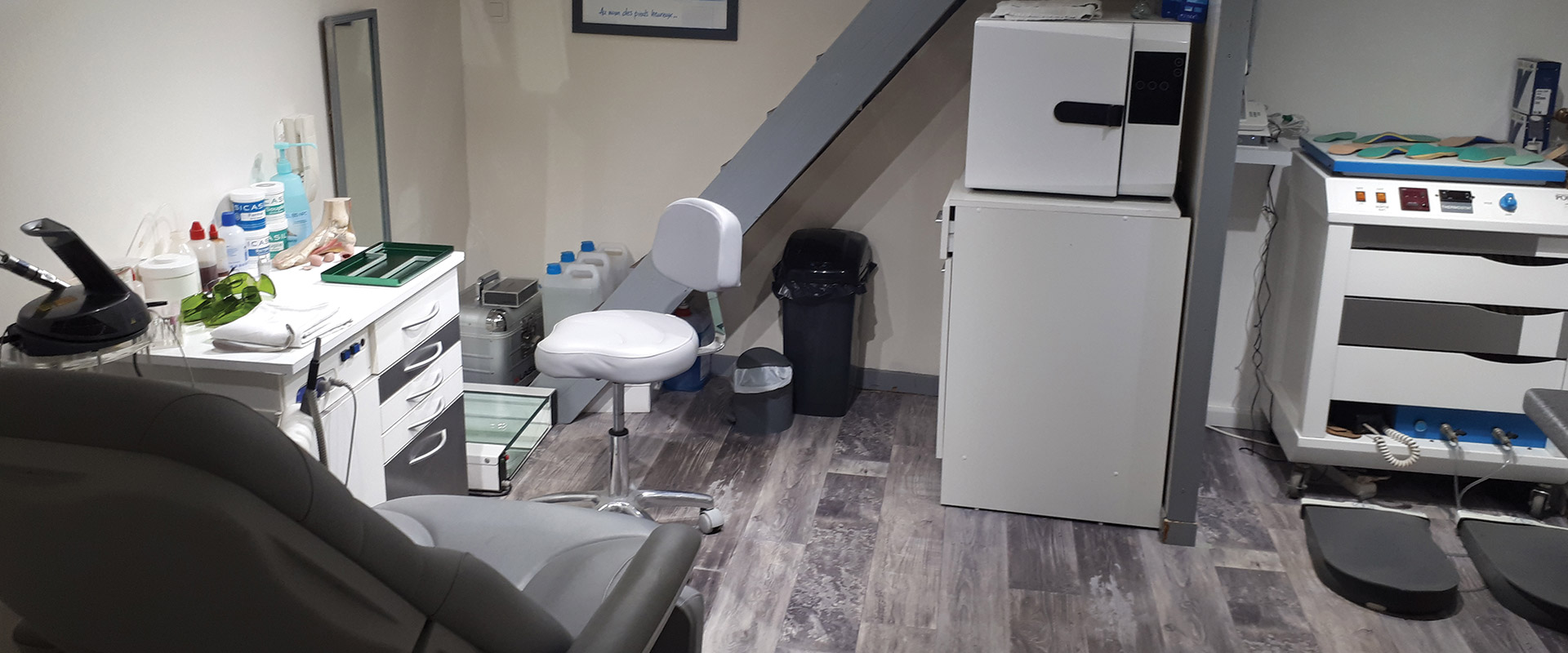 Le cabinet de Pédicurie Podologie de Geoffrey Halini est situé au 5 Rte d’Aigre à Ruffec 16700. Geoffrey Halini, Pédicure-Podologue, est spécialisé en pédicurie et en podologie dans les troubles statodynamiques par la réalisation d’orthèses plantaires thermoformées et dans les petits appareillages (orthonyxie, orthoplastie, prothèse unguéale) ainsi qu’en thérapie laser haute performance.