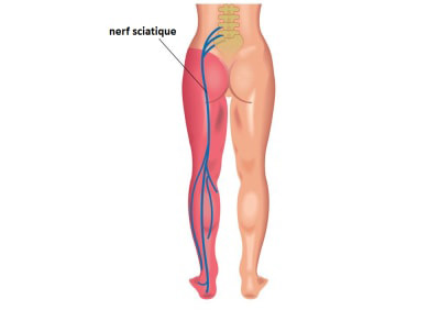 Le nerf sciatique est le nerf le plus long de l'organisme, et est formé de la réunion de racines nerveuses issues des 4ième et 5ième vertèbres lombaires (L4 et L5) et des premières vertèbres sacrées (S1, S2 et S3). Il se trouve dans le plan postérieur de la cuisse. Cette pathologie est due au pincement du nerf en question par le rétrécissement du canal rachidien, conséquence d’une hernie discale ou d’une inégalité des membres inférieurs par exemple.